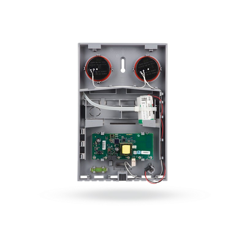 La sirène se compose d'un socle JA-163A-BASE-RB avec les composants électroniques, d'une pile au lithium BAT-100A et d'un boîtier en saillie de la série JA-1X1A-C-xx.Elle occupe une position dans le système.